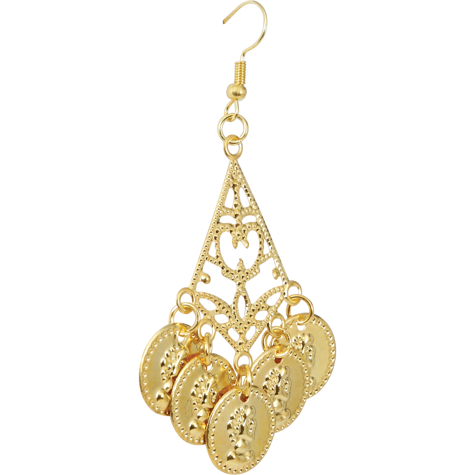 Pendientes colgantes con varias monedas que aportan movimiento, brillo y un sonido ligero al bailar. Perfectos para completar looks de danza del vientre, Carnaval, fiestas temáticas y actuaciones. Diseño llamativo que realza cualquier conjunto con un toque oriental y festivo. Gancho cómodo para una colocación rápida y uso durante eventos.