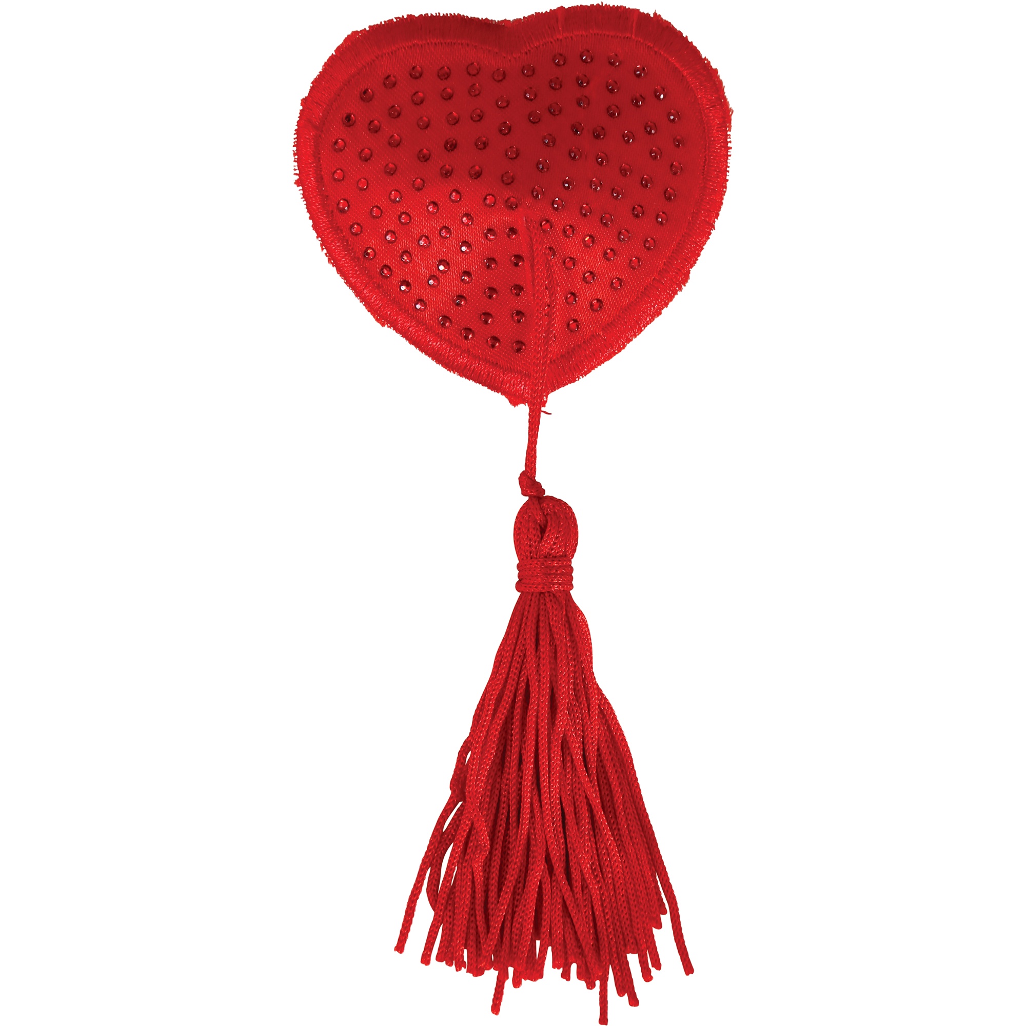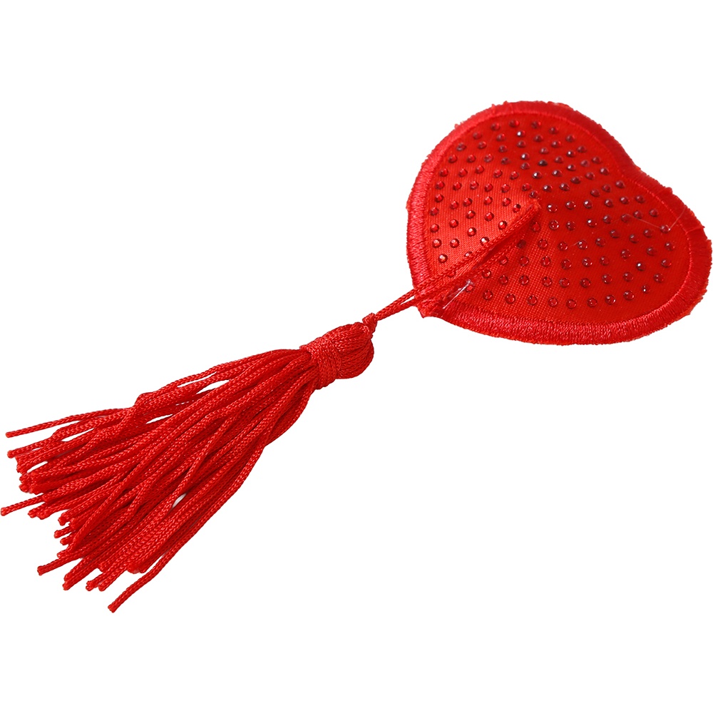Accesorio sensual y llamativo que aporta un toque atrevido y romántico a cualquier conjunto íntimo. Las pezoneras presentan un diseño en corazón de color rojo con borlas largas que crean movimiento y estilo. Están fabricadas en látex y poliéster, combinando flexibilidad y comodidad. Detalle perforado que realza la textura y el acabado del producto. Ligera y discreta, perfecta para sorprender y complementar looks de noche.