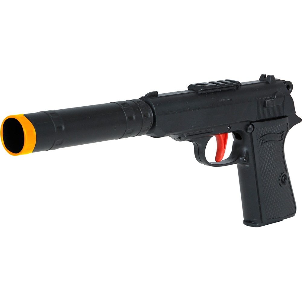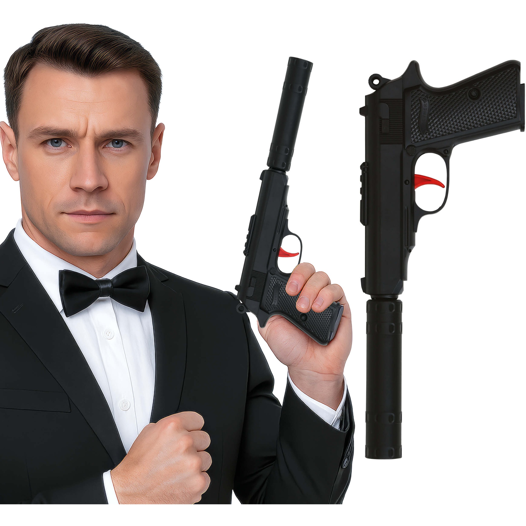 Réplica de juguete con silenciador ideal para completar un look de agente secreto o para ambientar fiestas temáticas. Fabricada en PVC, combina un aspecto realista con un peso ligero para mayor comodidad al llevarla en mano. Mide aproximadamente 29 cm, lo que la hace fácil de sujetar y manejar en photocalls, carnavales y eventos.