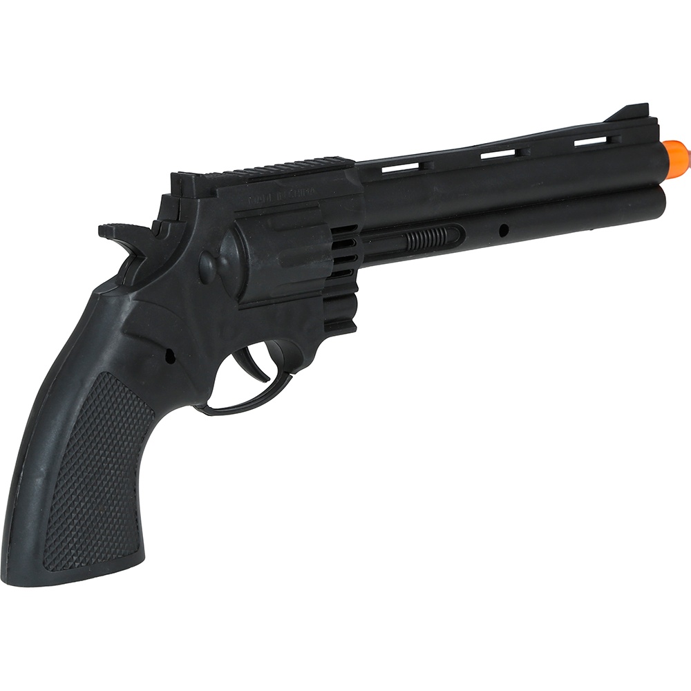Pistola de juguete estilo revólver diseñada para complementar disfraces del lejano oeste. Fabricada en PVC ligero y con punta naranja de seguridad para identificarla como accesorio de juguete. Ideal para fiestas temáticas, Carnaval y sesiones de fotos con ambientación western. Diseño visualmente realista que aporta impacto a tu look sin riesgo.