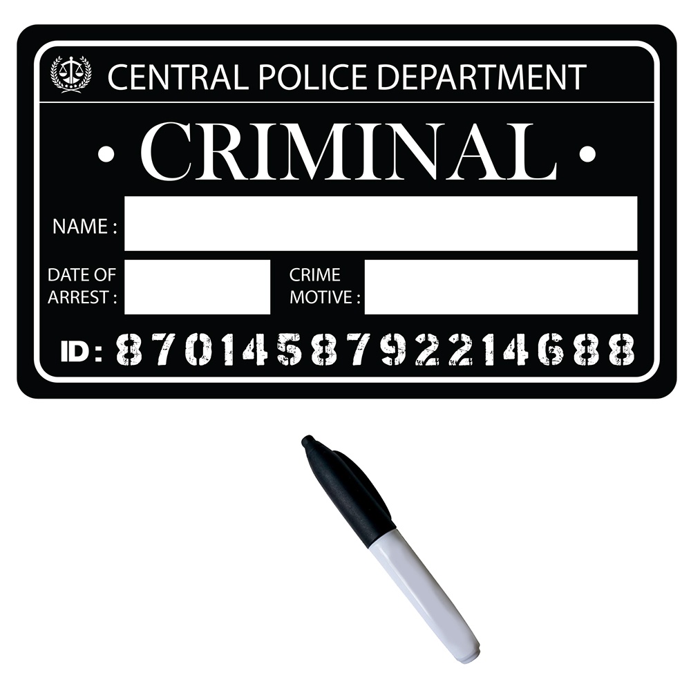 Pizarra criminal en PVC con diseño tipo ficha policial para dar un toque realista a tus fotos y photocalls. Su superficie permite escribir y borrar con facilidad para personalizar nombres, fechas y motivos. Ligera y resistente, es perfecta para fiestas temáticas, sesiones de fotos y complementos de disfraces. Producto reutilizable y de manejo sencillo.