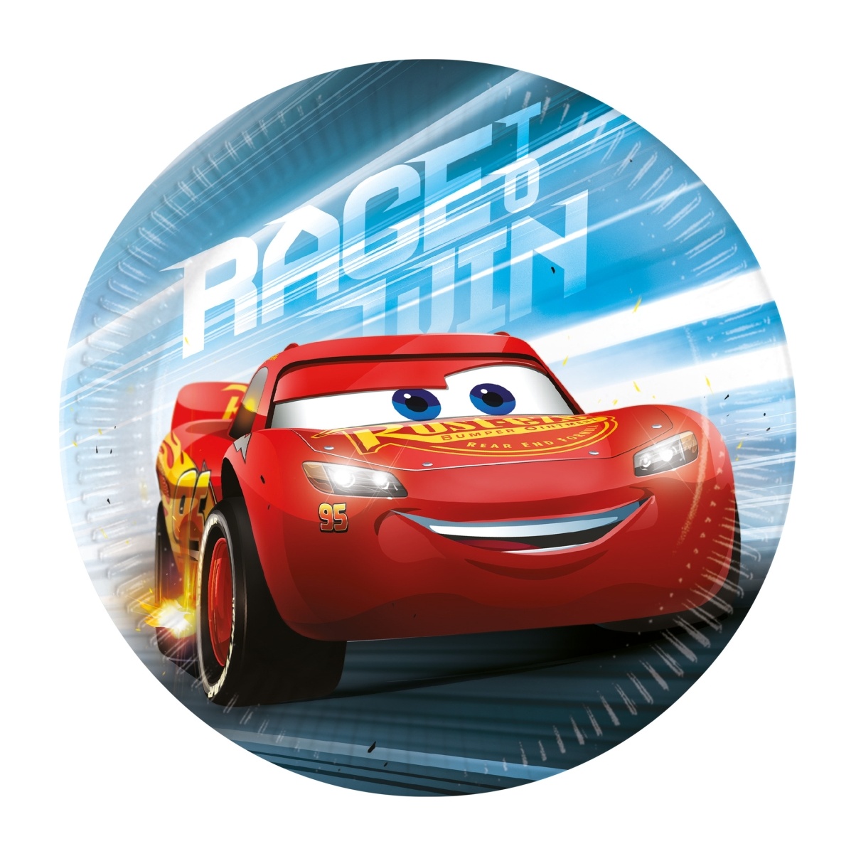 Pack de 8 platos desechables con diseño de Rayo McQueen, presentados en 2 diseños surtidos.