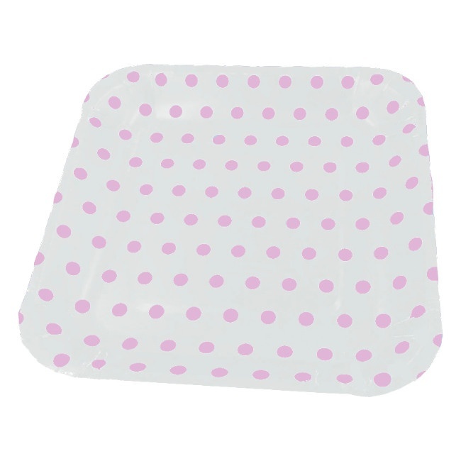 Platos cuadrados a lunares de 22 x 22 cm - 6 unidades