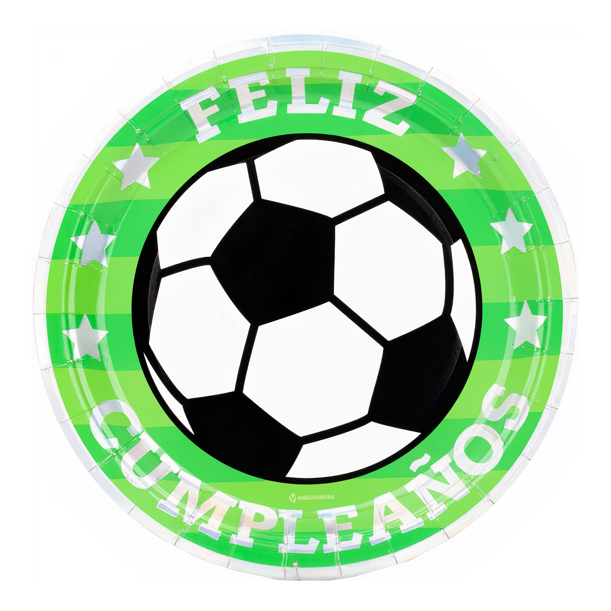 Platos de Feliz Cumpleaños de fútbol iridiscente de 18 cm - 8 unidades