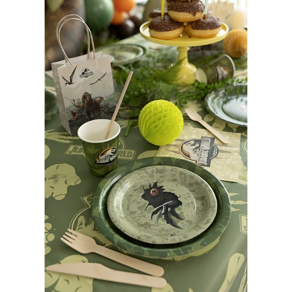 Platos de papel Jurassic World redondos con diseño inspirado en la saga, perfectos para ambientar mesas infantiles con motivos de dinosaurios. Diámetro aproximado 18 cm; surtido de colores y acabado llamativo que destaca en la decoración.