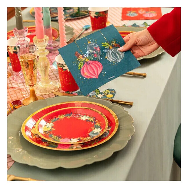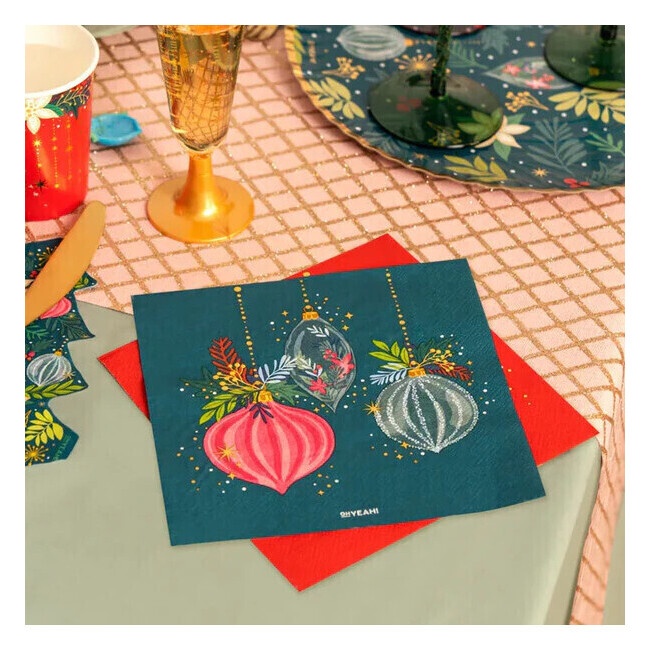 Servilletas de 16,5 cm de adorno navideño verde - 30 unidades