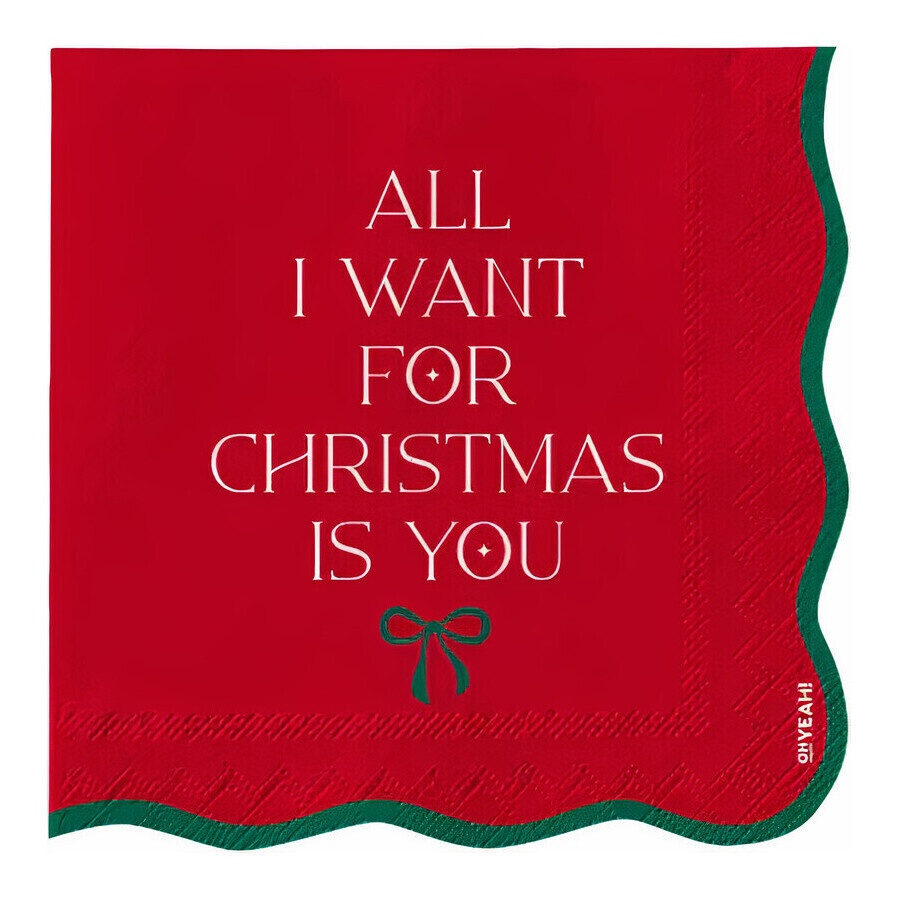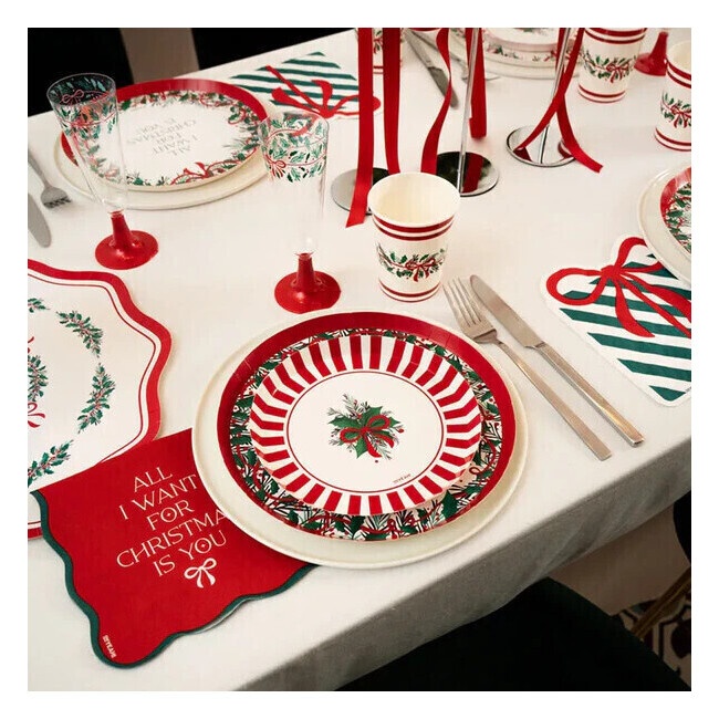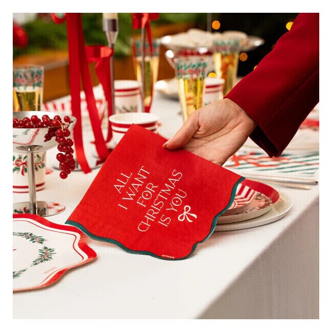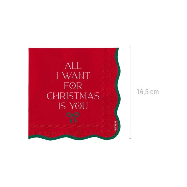 Servilletas de 16,5 cm de muérdago con lazo rojo - 20 unidades
