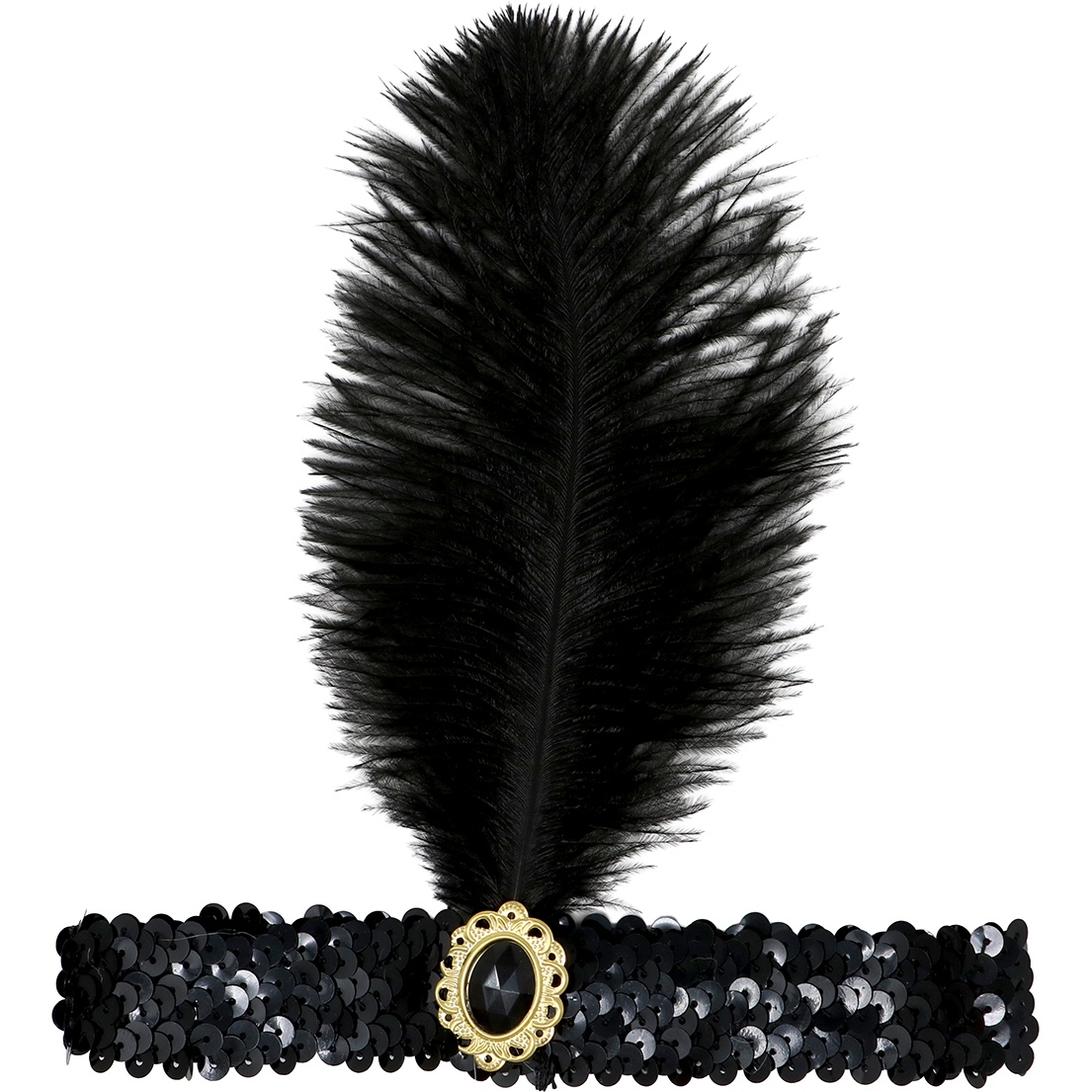 - Estética años 20 con detalles brillantes y pluma para un acabado glamuroso.