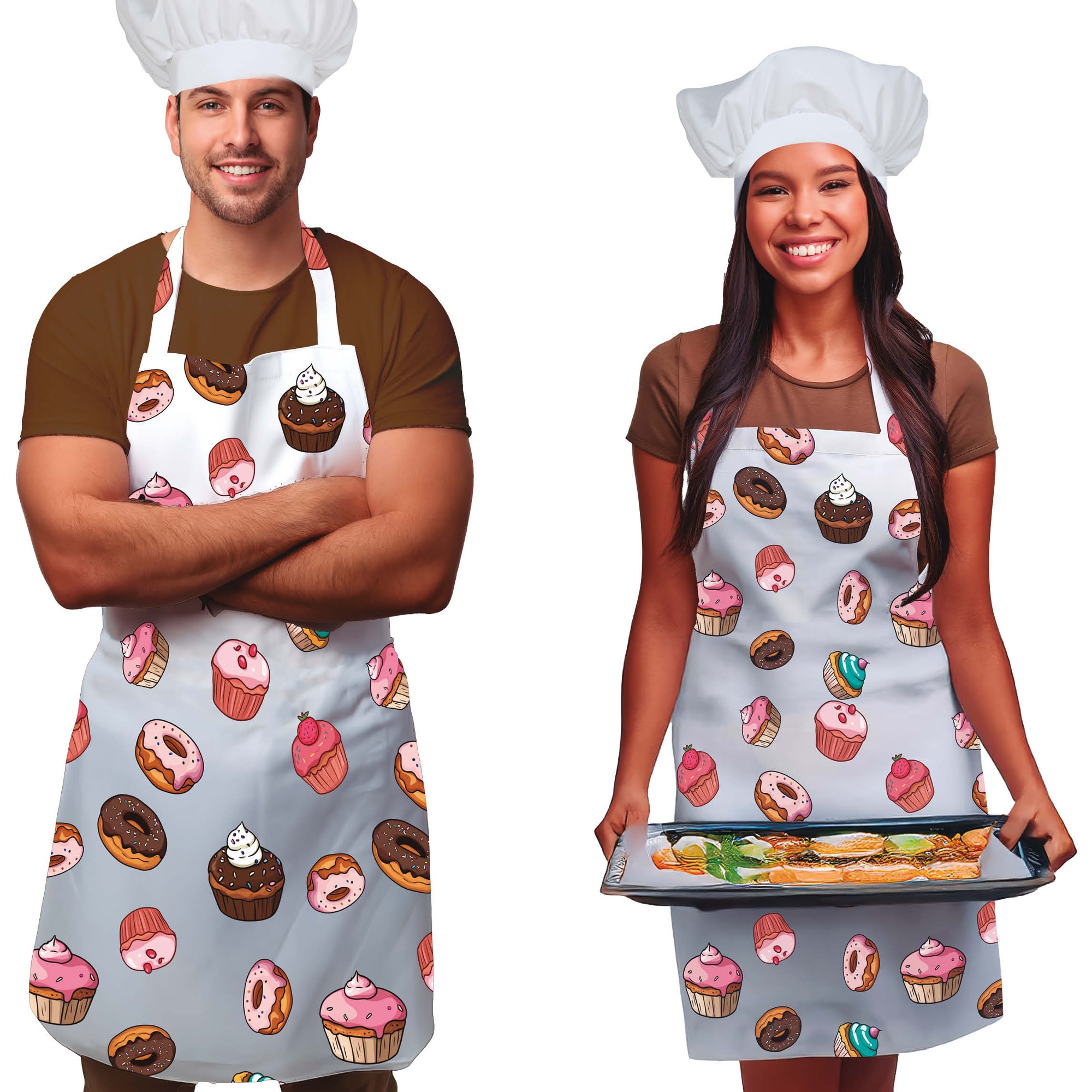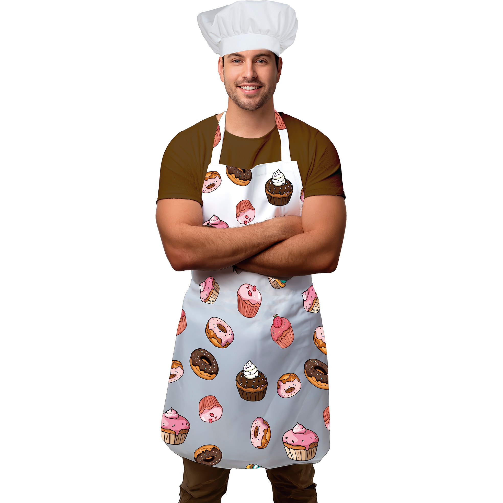 Conjunto de delantal y gorro de cocinero cupcakes para adulto