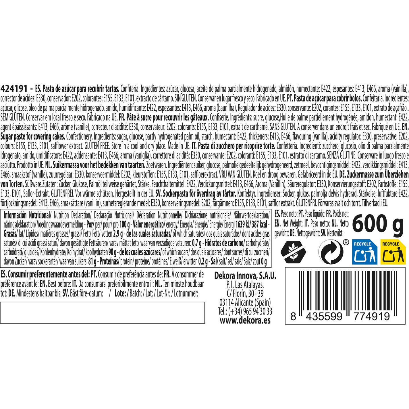 - Peso neto total: 600 g