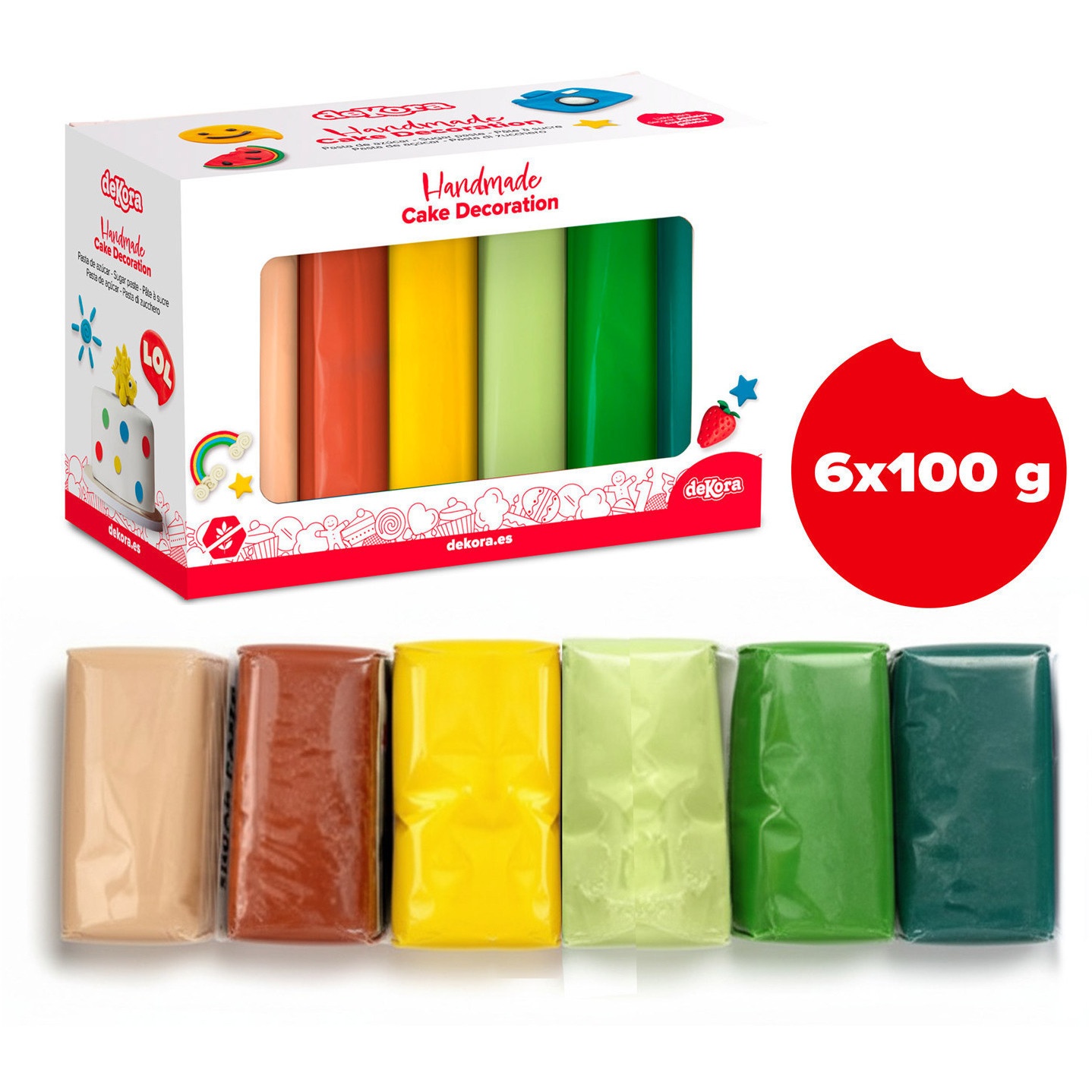 Set de fondant de 6 colores la jungla de 600 gr - Dekora