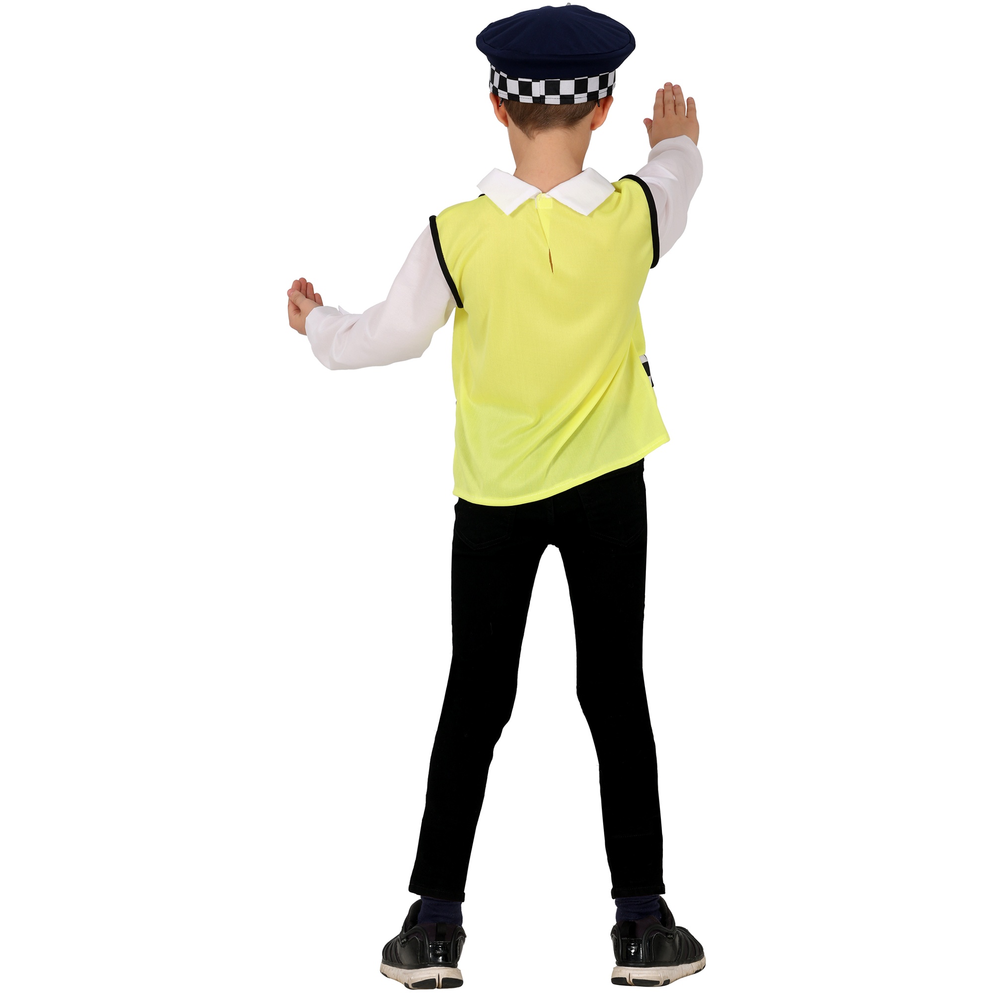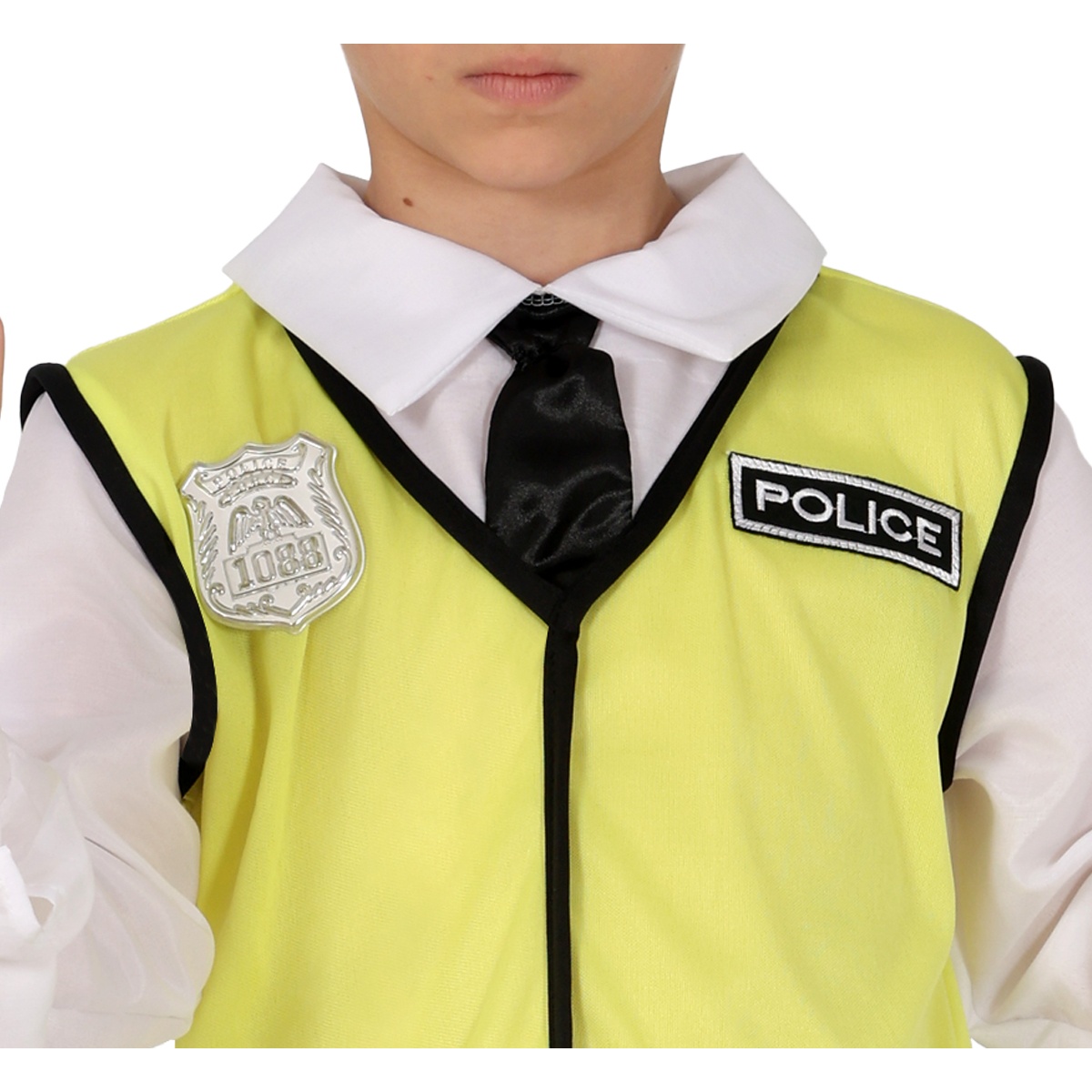 Set de policía infantil diseñado para el juego de roles y las fiestas. Presenta un chaleco de alta visibilidad con detalles tipo ajedrez y un gorro con emblema que aportan un aspecto realista. Confeccionado en poliéster ligero para mayor comodidad durante el uso. Ideal para ambientar celebraciones y estimular la imaginación de los más pequeños.