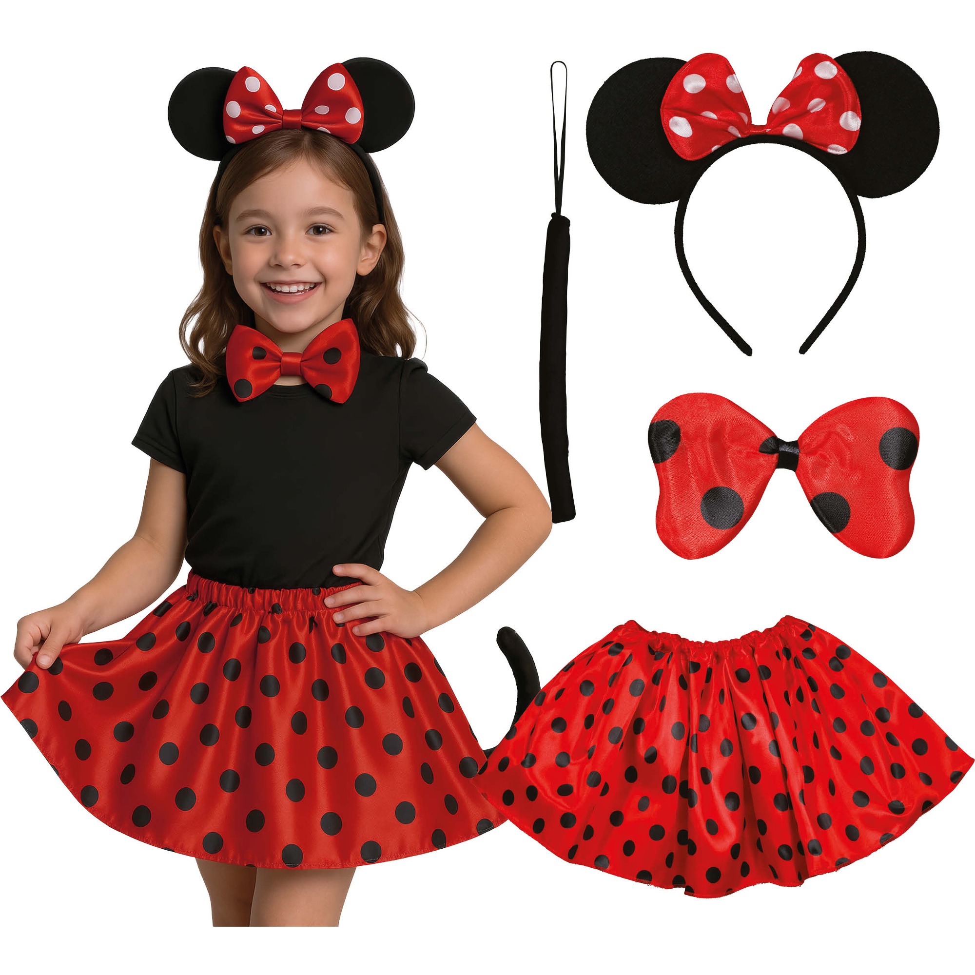 Conjunto de ratoncita con diadema, pajarita, falda y cola