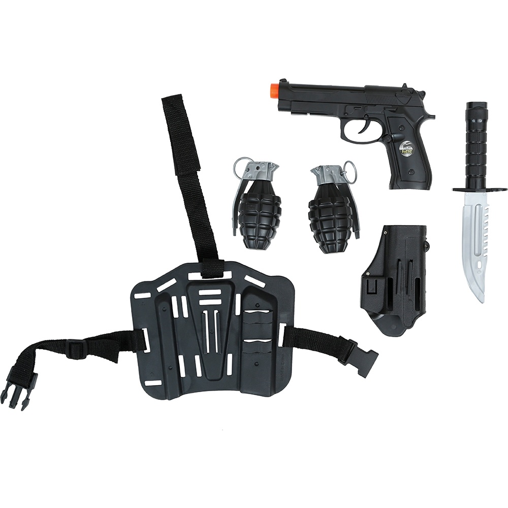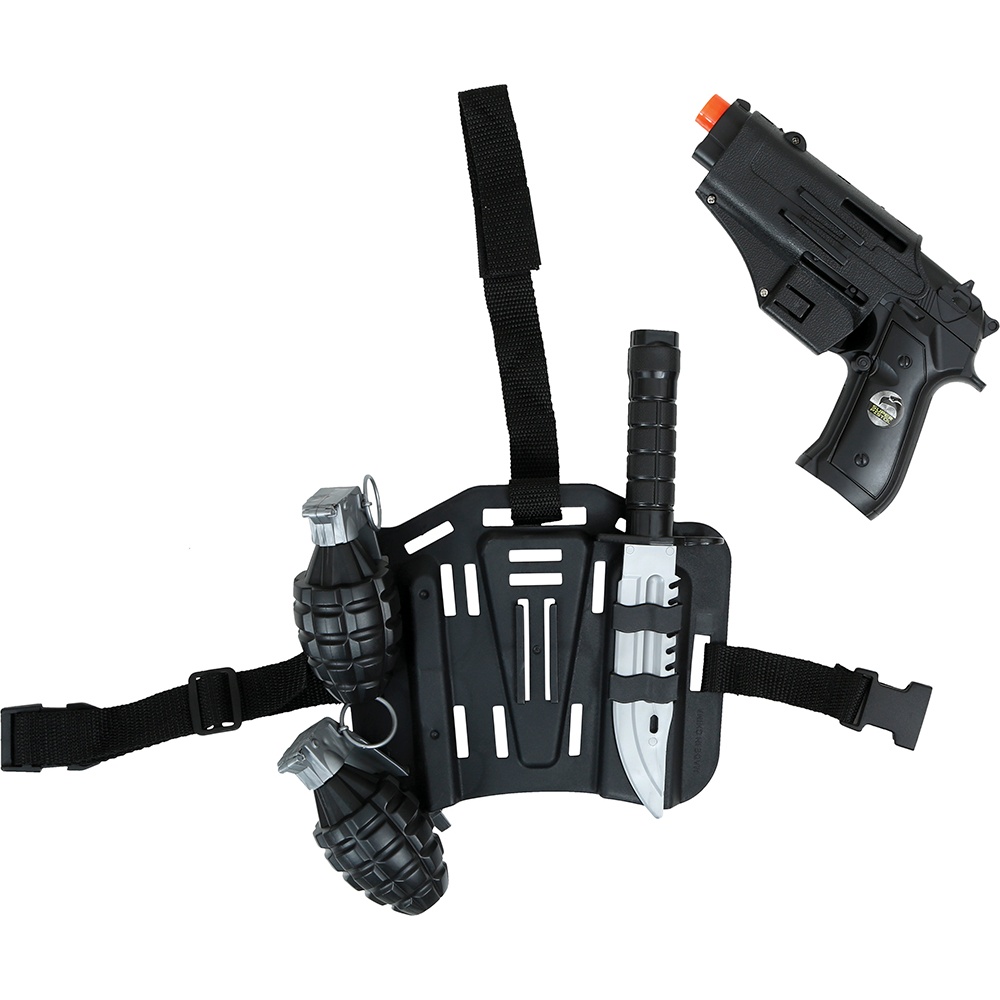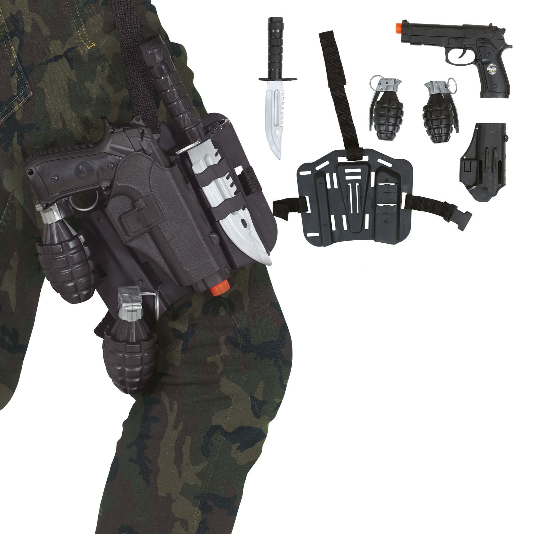 Complementa tu disfraz militar con un set táctico de aspecto realista pensado para fiestas y eventos temáticos. Las piezas en PVC ofrecen un acabado contundente sin renunciar a la ligereza. Perfecto para Carnaval y otras celebraciones donde quieras dar un toque auténtico a tu look.