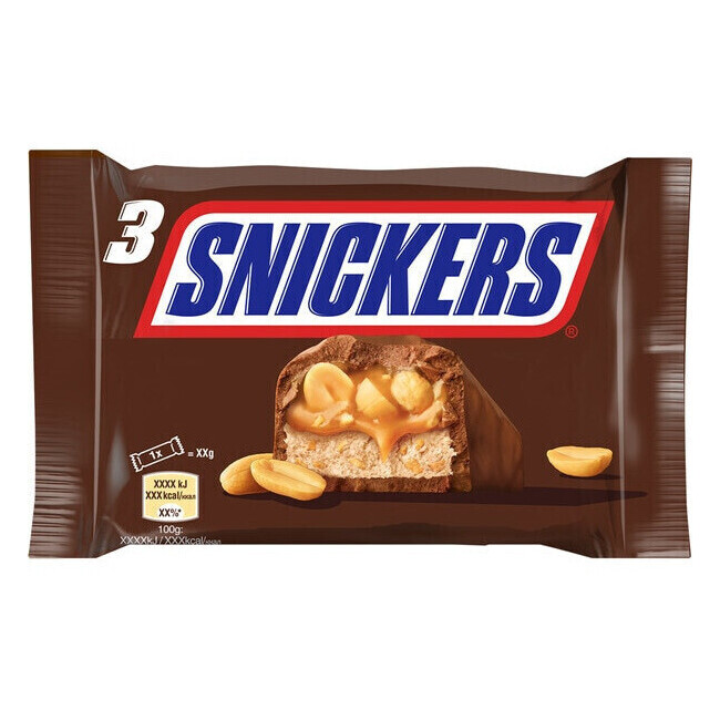Snickers de chocolate con leche con cacahuetes de 50 gr - 3 unidades