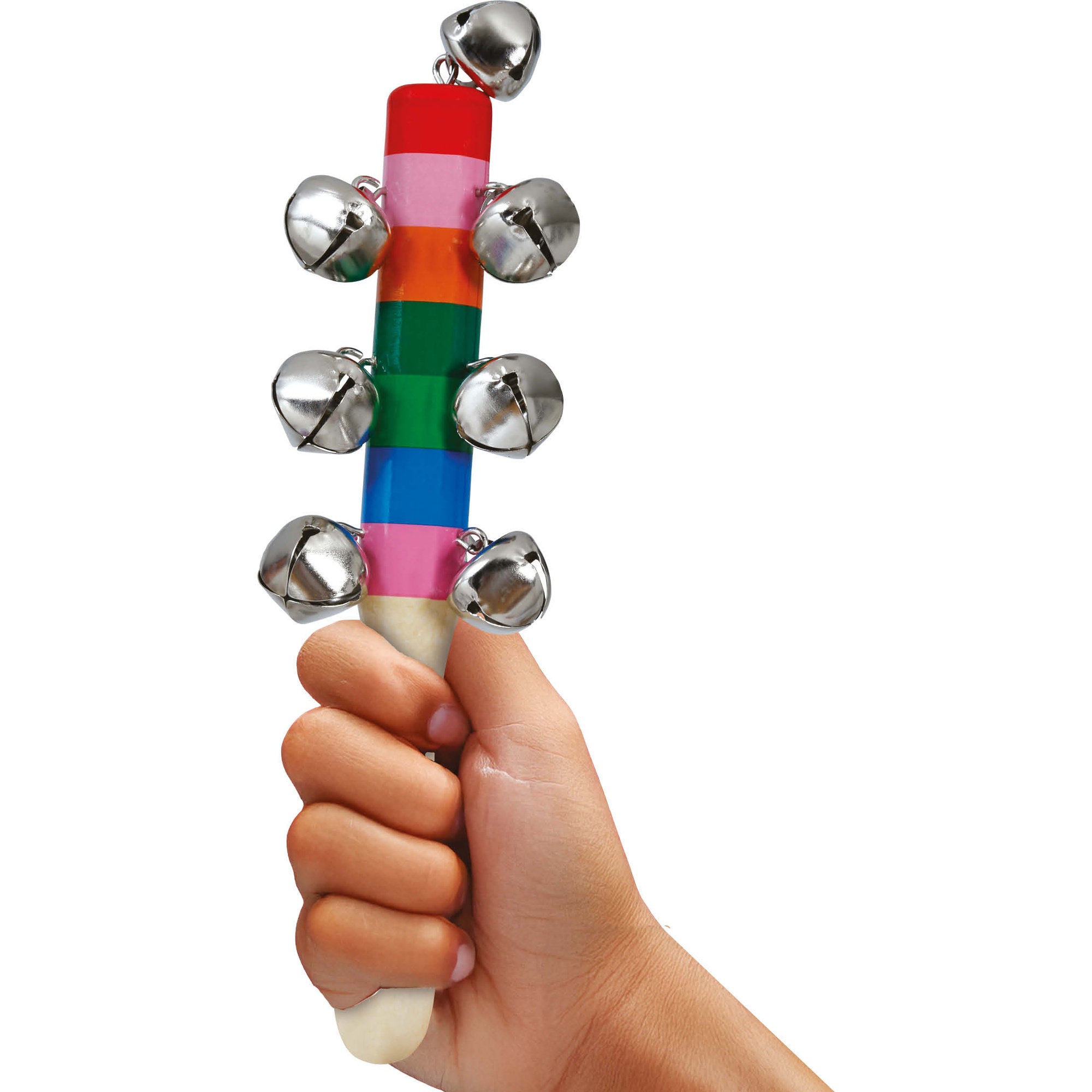 - Sonido claro y festivo gracias a múltiples cascabeles metálicos