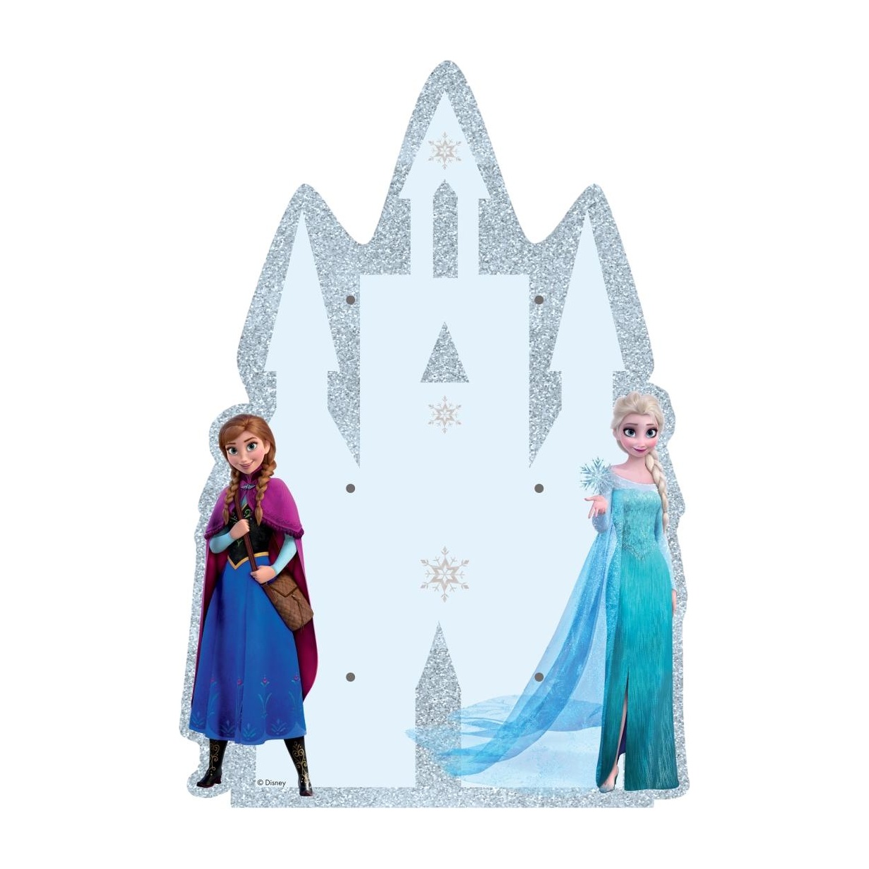 Con silueta de castillo y motivos invernales, crea un centro de atención ideal para celebraciones infantiles.