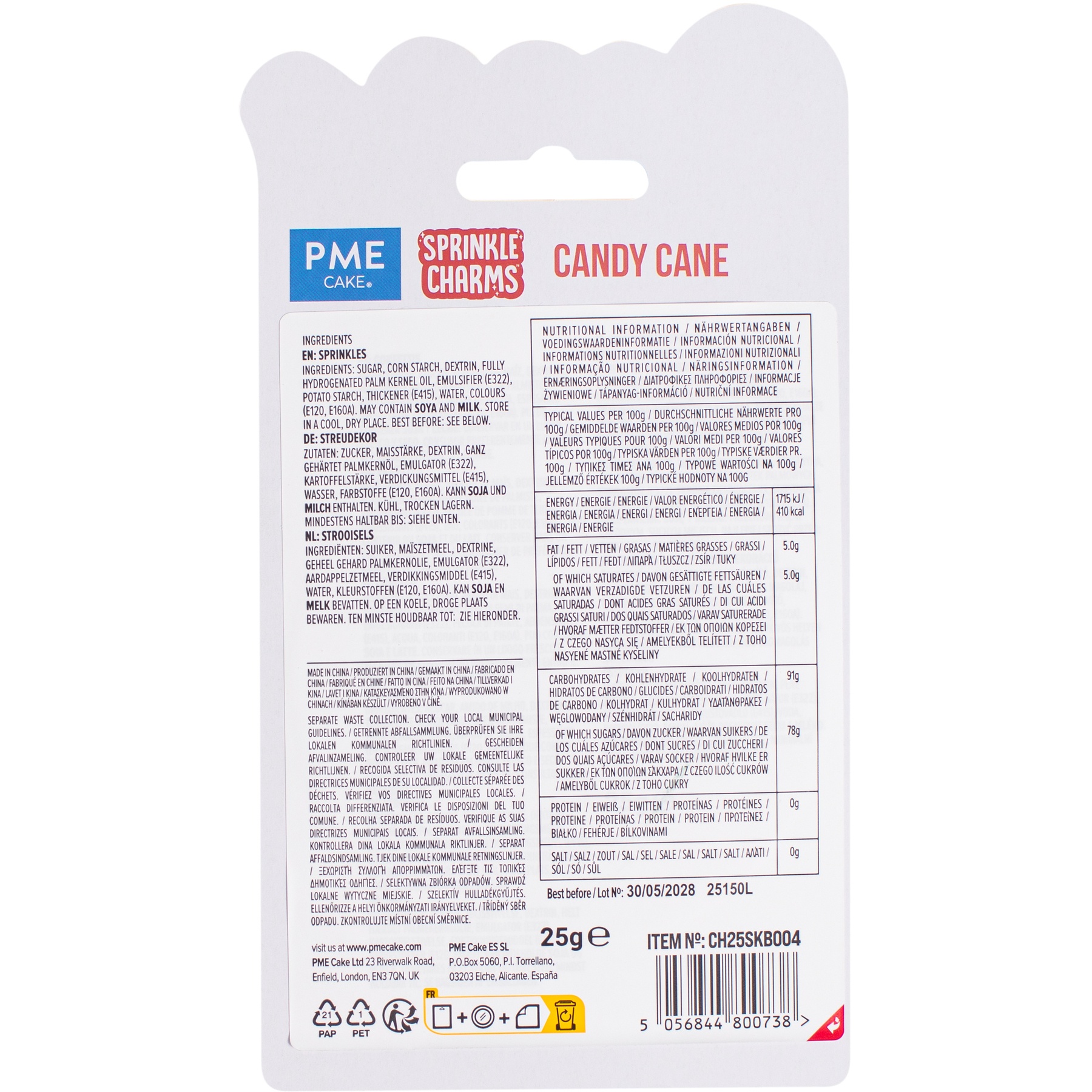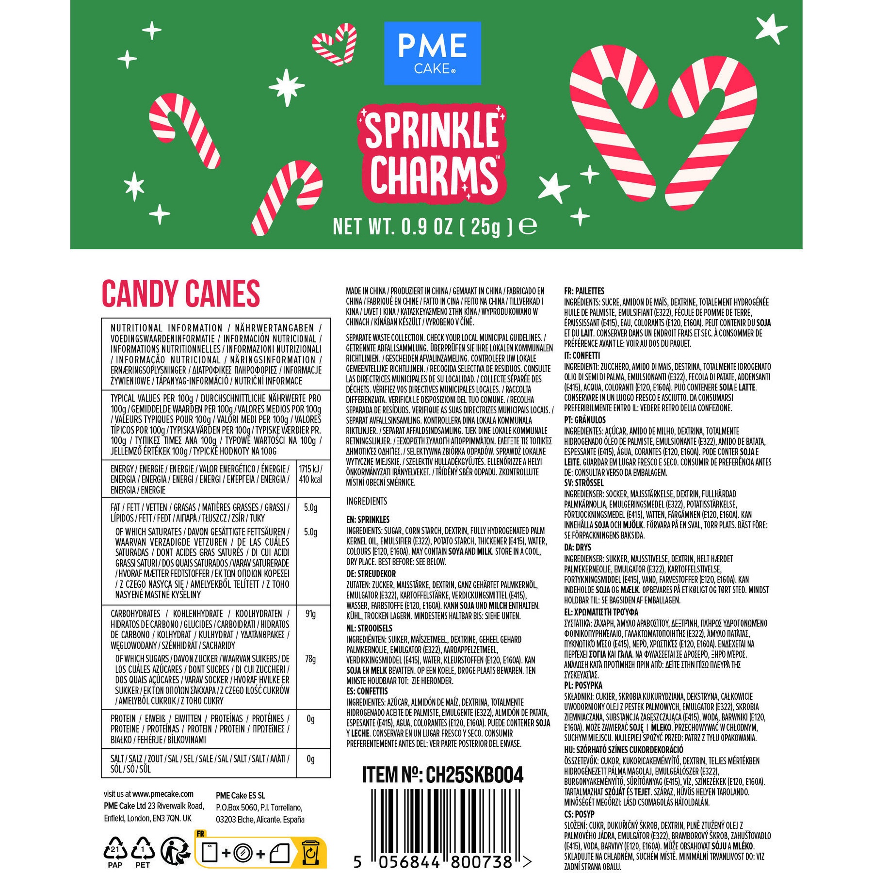 Sprinkles de bastones de caramelo de 25 gr - PME