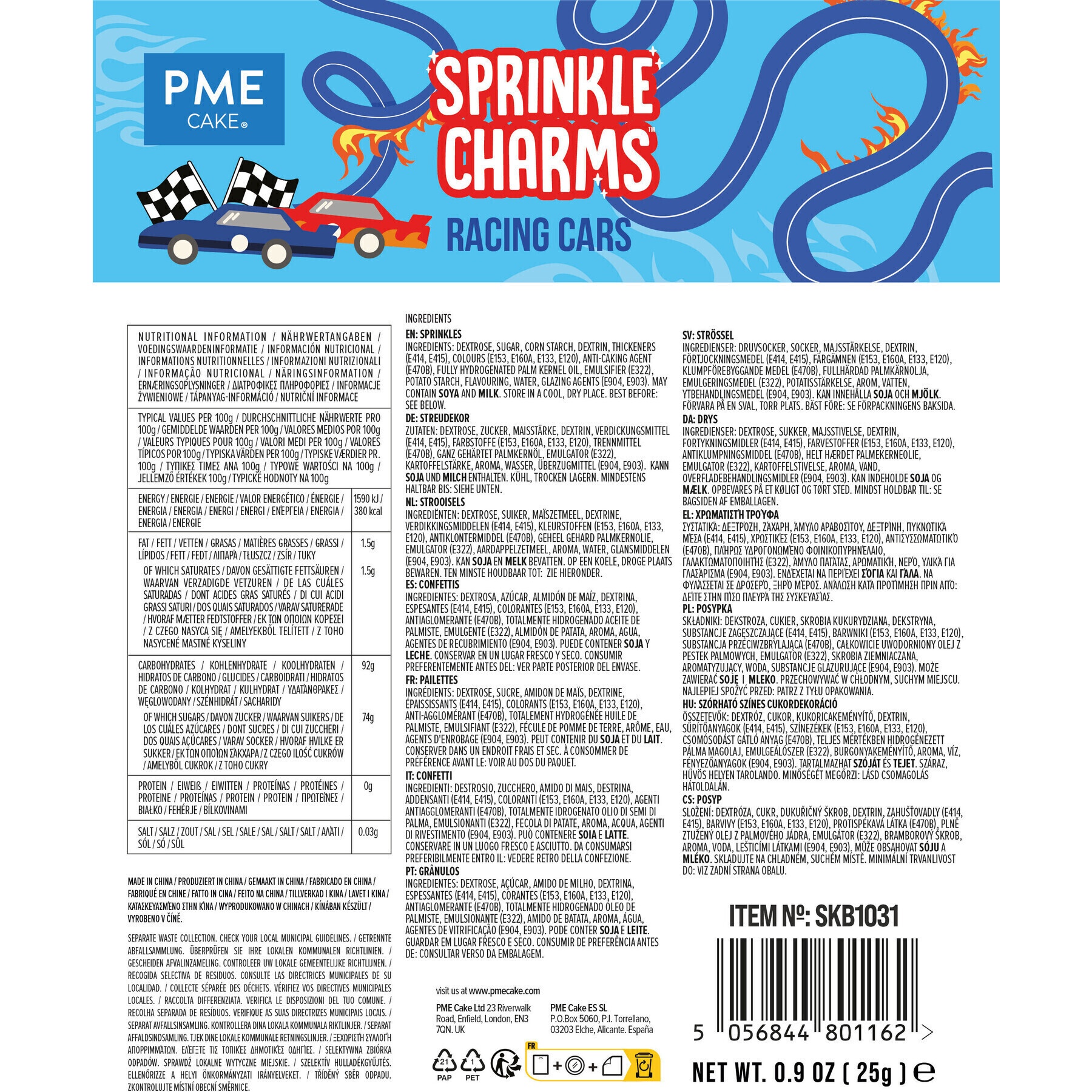 Sprinkles de coches de carreras de 25 gr - PME