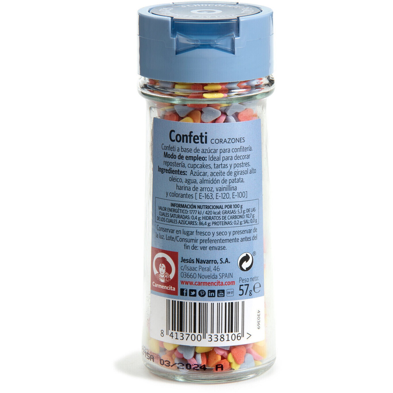 Ingredientes: azúcar, aceite de girasol alto oleico, agua, almidón de patata, harina de arroz, vainilla y colorantes [E-163, E-120, E-100].