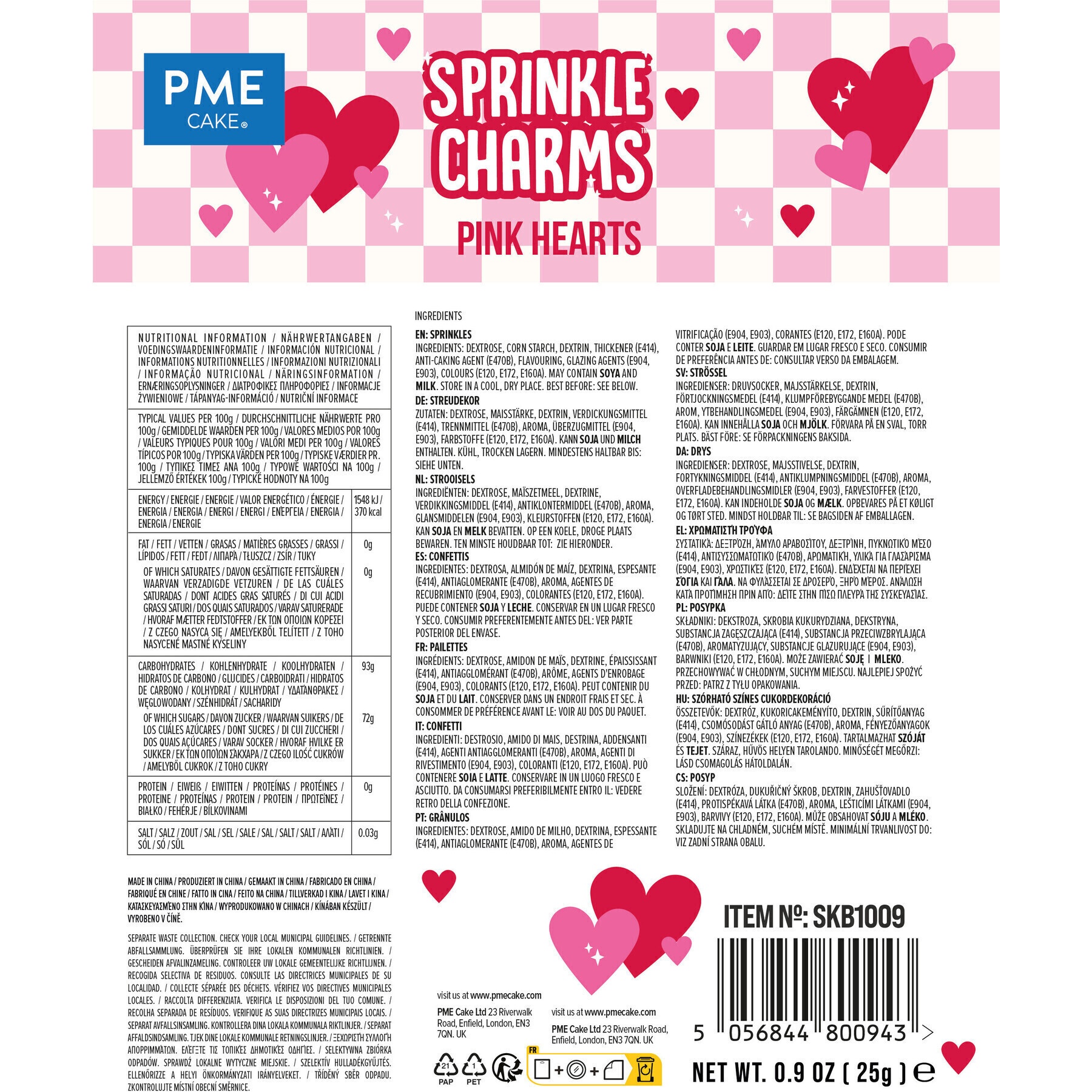 Sprinkles de corazones rosas de 25 gr - PME