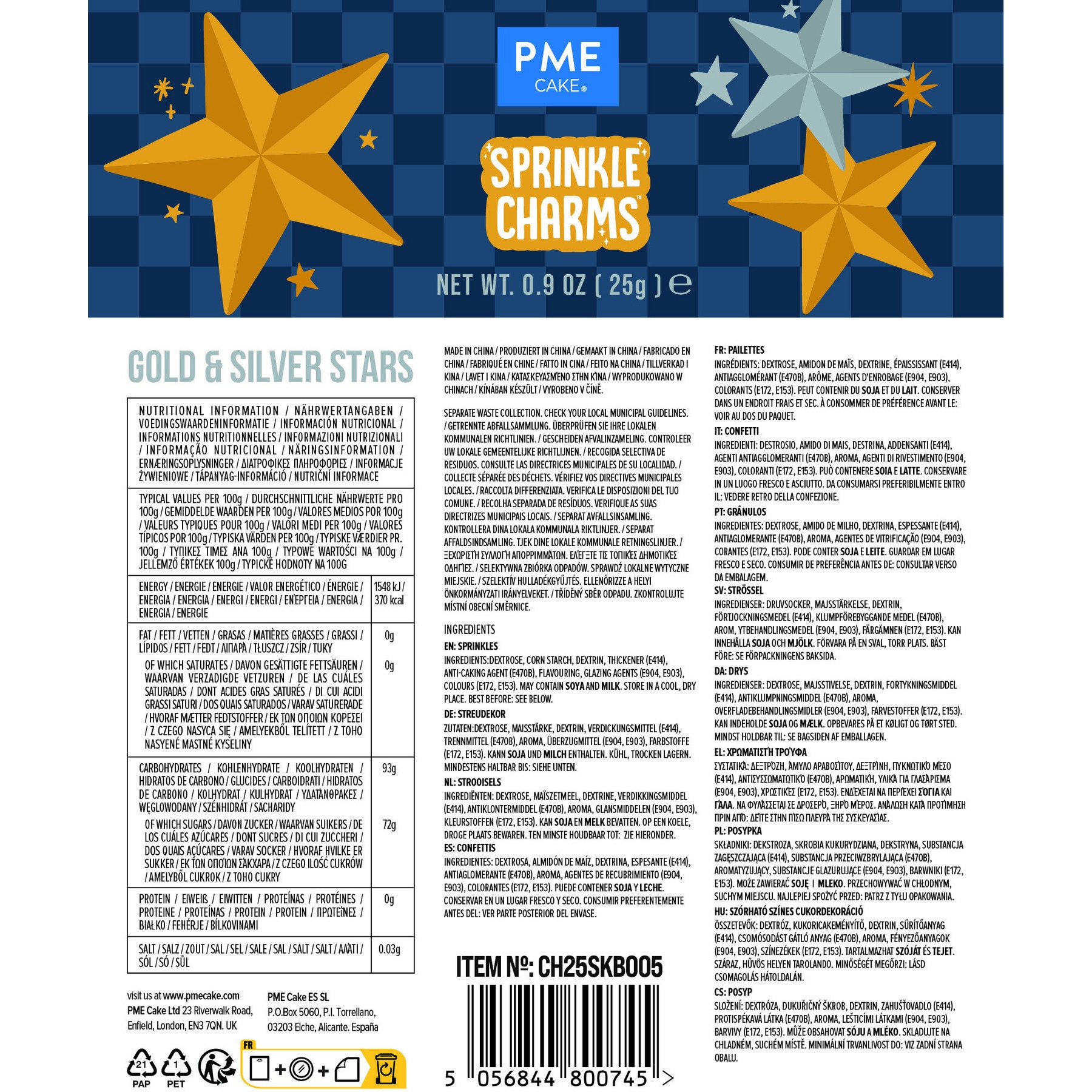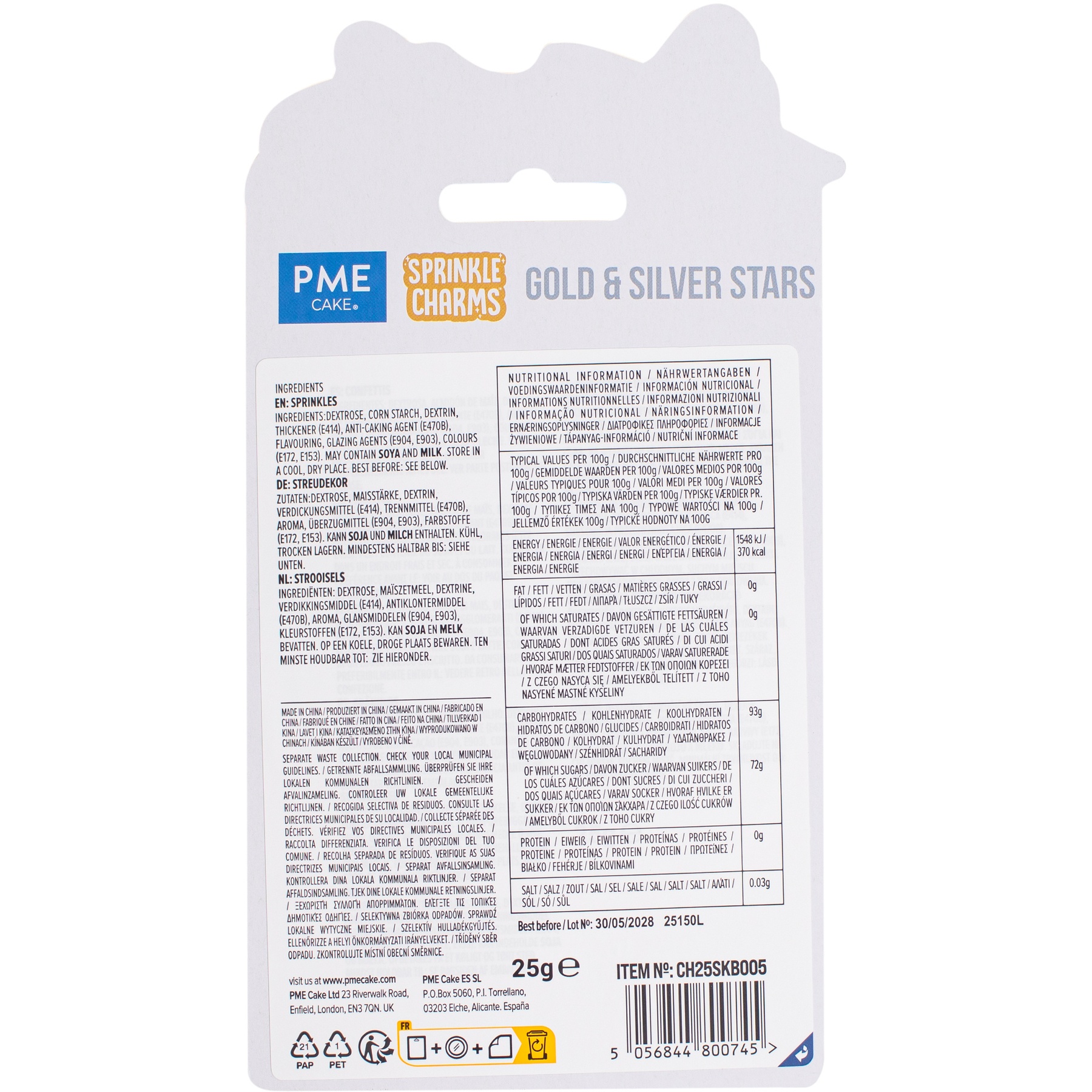 Sprinkles de estrellas doradas y plateadas de 25 gr - PME