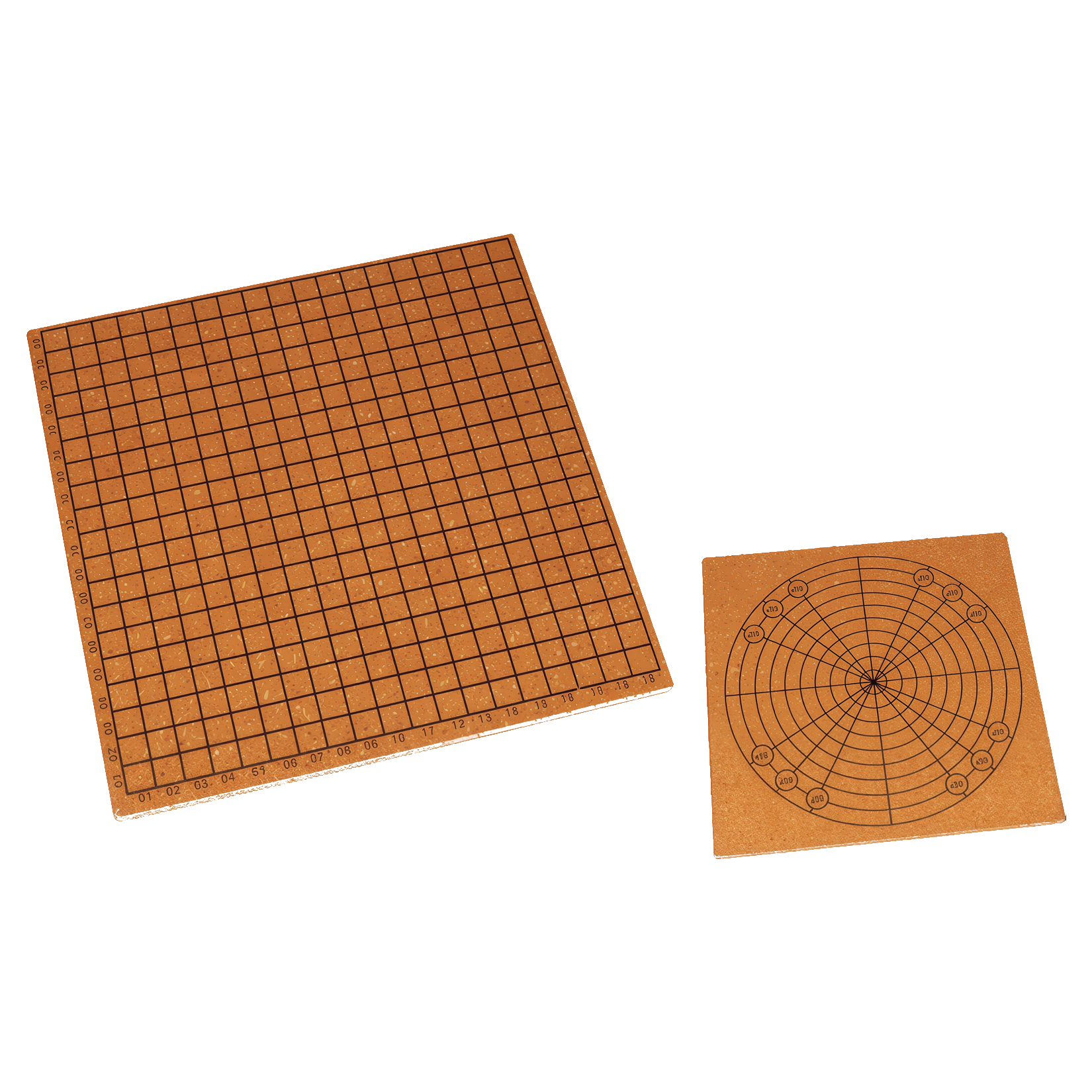 - Consta de un tablero de doble cara con una cuadrícula cuadrada en un lado y una cuadrícula circular en el otro.