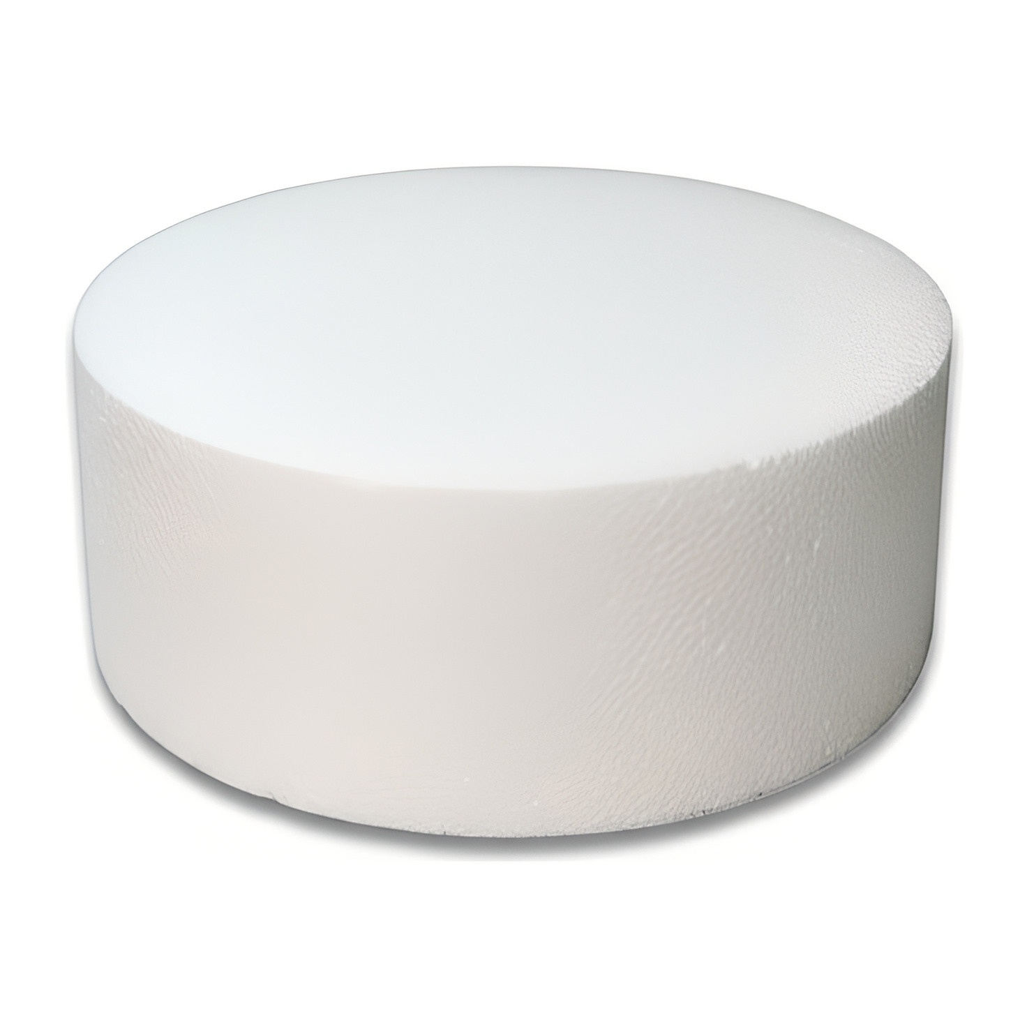 Tarta dummy redonda de 4 pisos (30 x 20 cm) diseñada para la práctica de decoración y trabajo con fondant. Simula la forma y proporciones de una tarta real para ensayar técnicas de recubrimiento, modelado y acabado.
