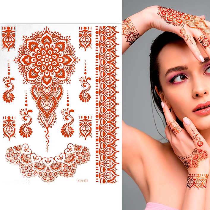 Tatuajes temporales de mano imitación henna - 6 unidades
