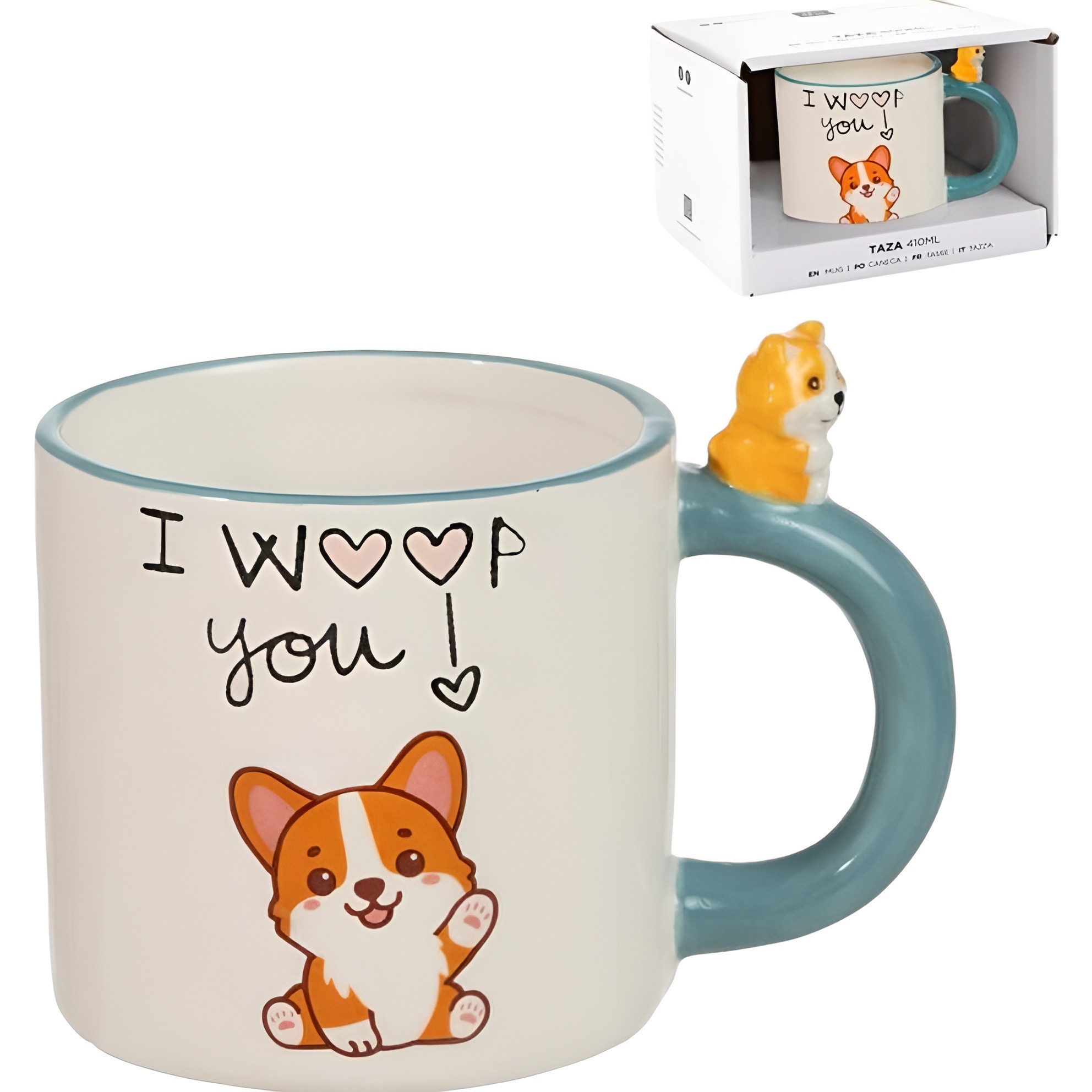 Una taza encantadora con un diseño de corgi que aporta ternura y personalidad a cada sorbo. El asa incluye una pequeña figura del perrito en 3D que le da un toque distintivo y divertido. Diseño alegre y detalles cuidados que la convierten en un regalo perfecto para aficionados a los perros. Capacidad generosa pensada para quienes disfrutan de su bebida preferida con estilo. Un artículo ideal para regalar en ocasiones especiales o para añadir a la colección personal.