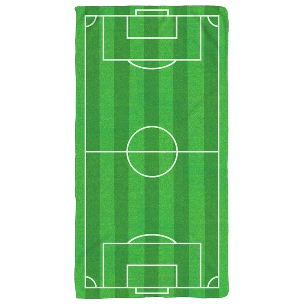 Toalla de playa con un diseño que reproduce un campo de fútbol, ideal para los aficionados que quieren llevar su pasión a la playa o la piscina.
