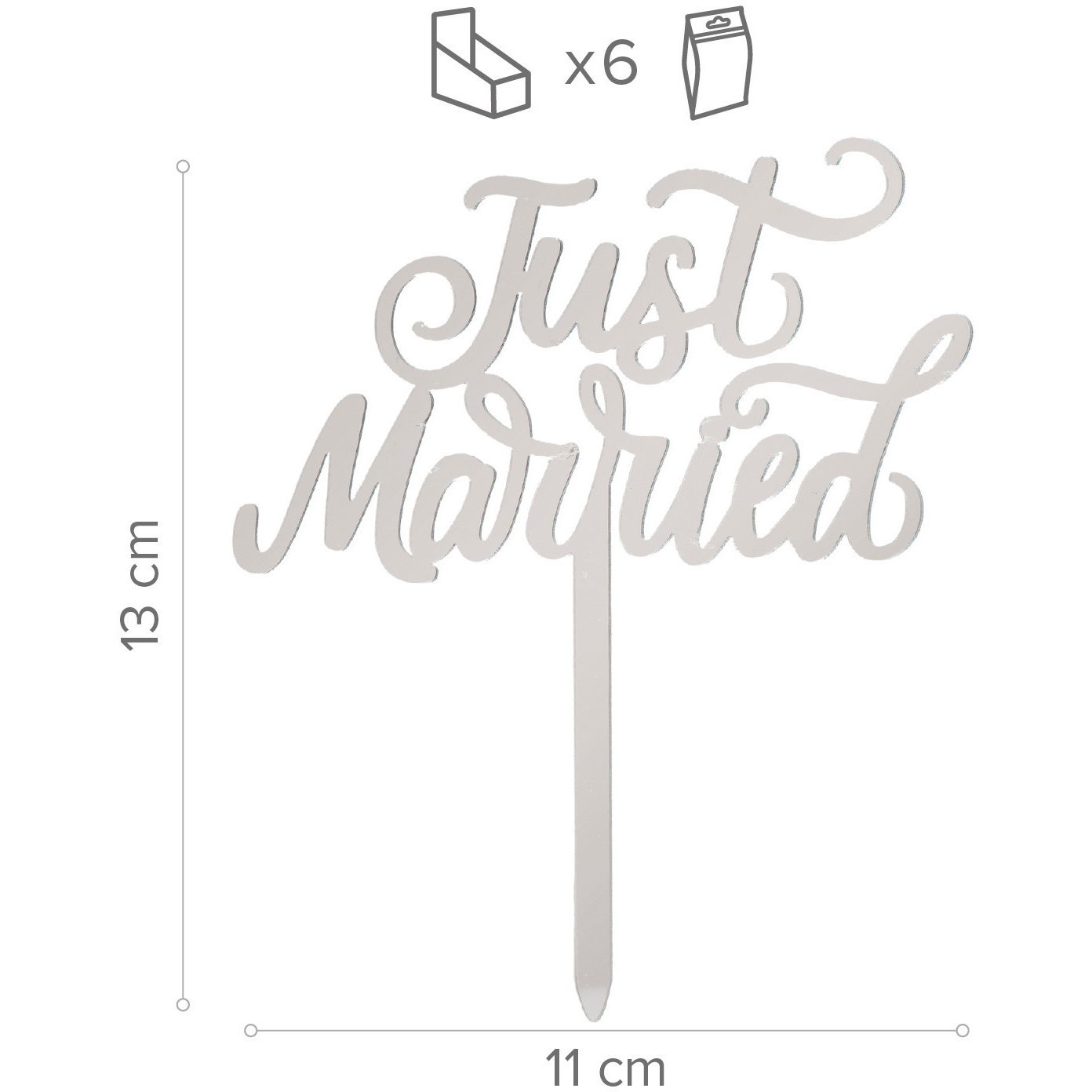 Topper para tarta de Just Married plateado