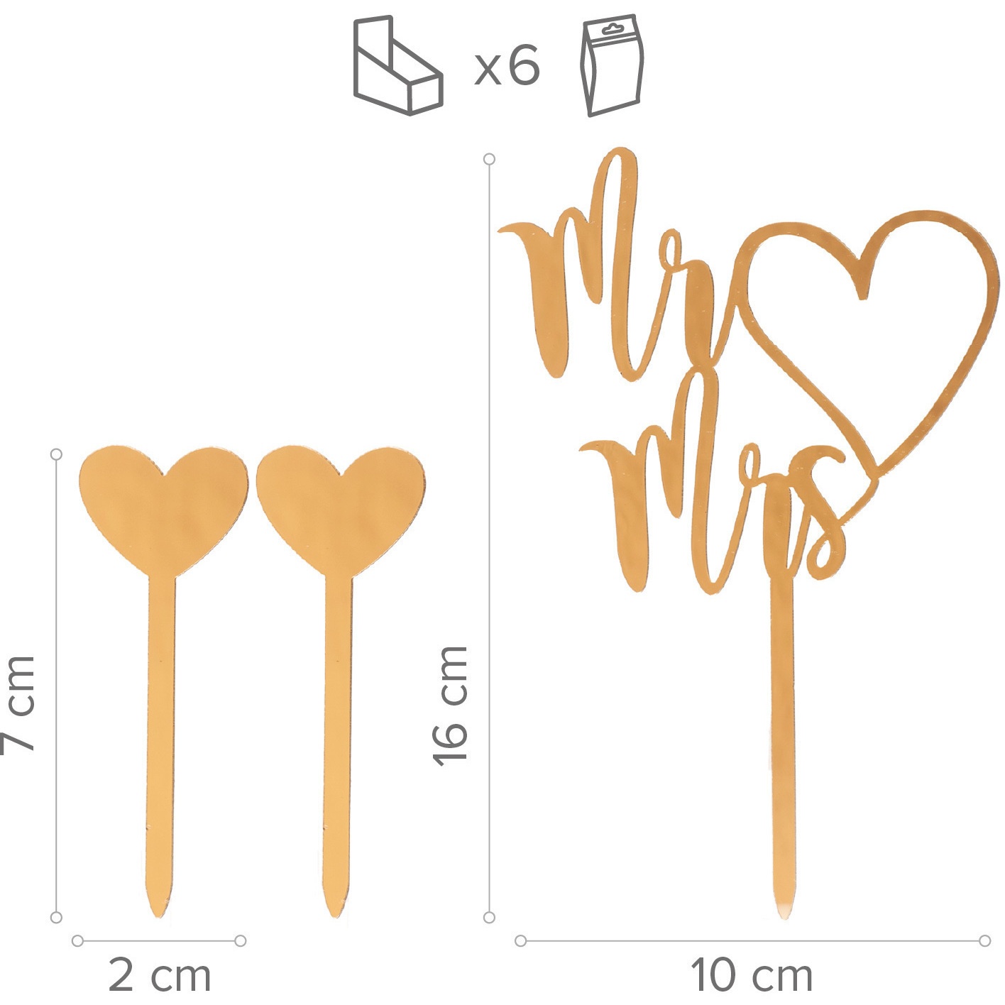 Topper para tarta de Mr and Mrs y corazones - 3 unidades