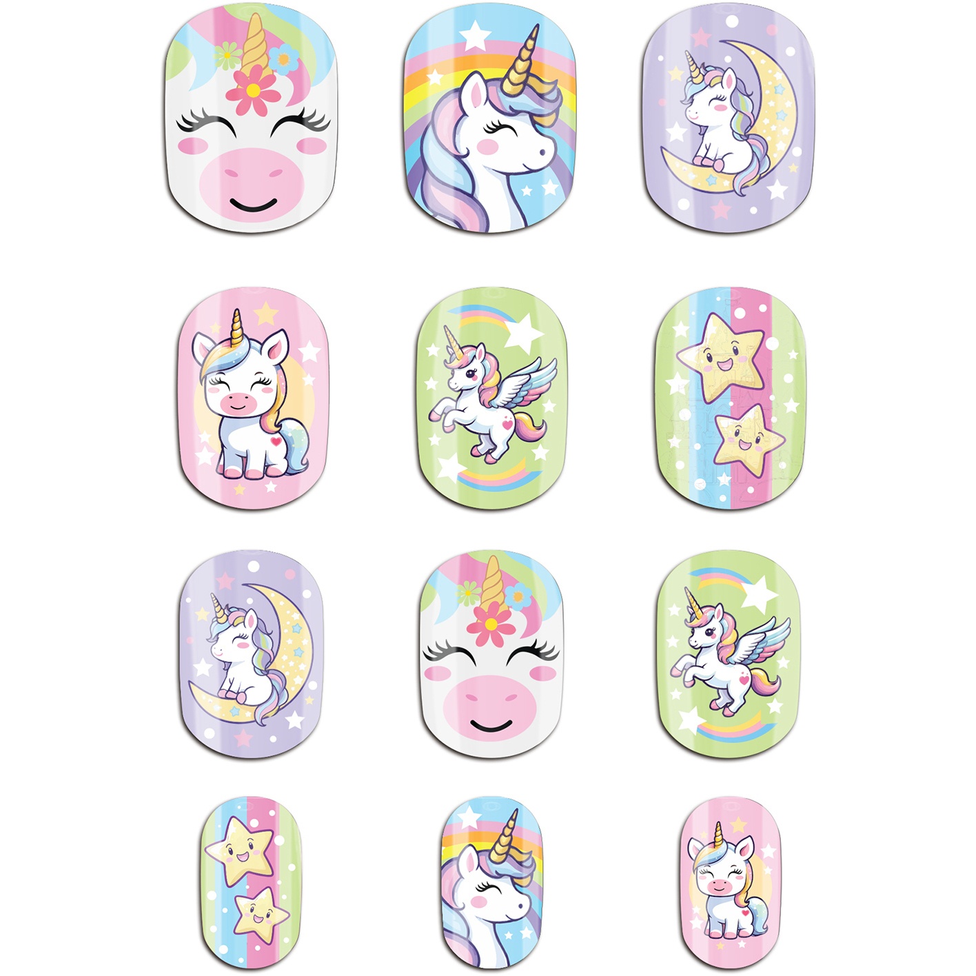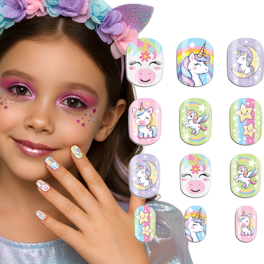 Uñas postizas de Unicornio infantiles - 12 unidades