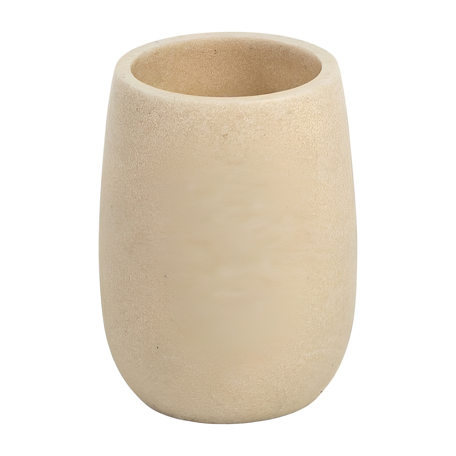 Vaso portacepillos con acabado efecto mármol que aporta un toque elegante y natural al baño. Su forma compacta y estable permite ordenar cepillos y accesorios de higiene personal con estilo.