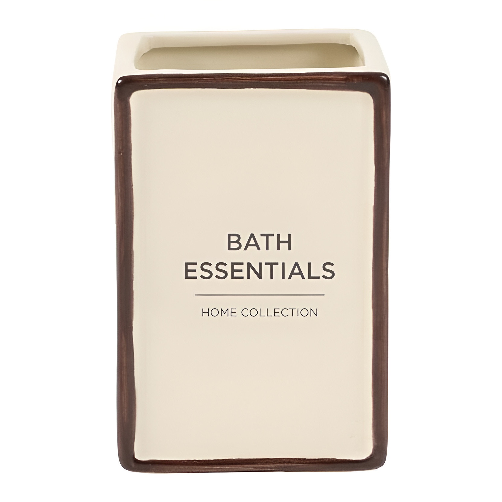Acabado neutro con la serigrafía Bath Essentials para un detalle decorativo discreto.