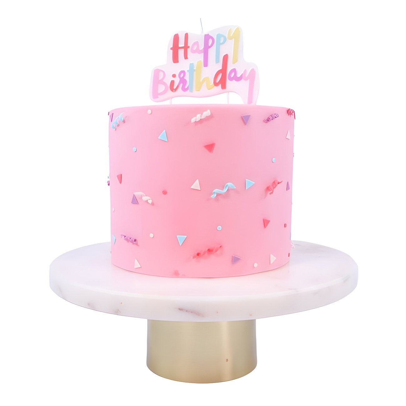Vela con mensaje de Feliz Cumpleaños formada por un fondo blanco, un mensaje repleto de colores y tonos pastel.