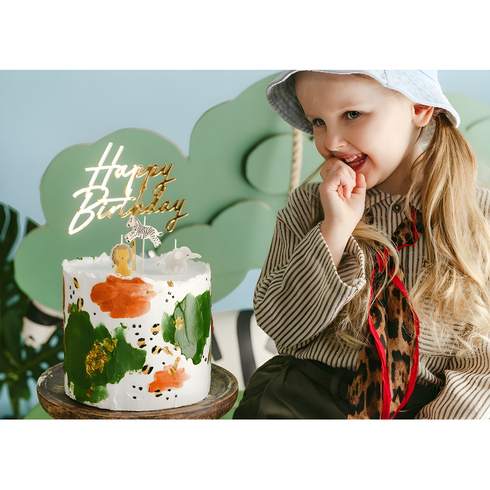 Velas de cumpleaños con encantadores motivos safari que aportan un toque divertido y colorido a las tartas infantiles. Este set mezcla diseños de león, cebra y elefante en colores suaves y acabados detallados. Las figuras tienen alturas aproximadas de 4.2 cm (león), 3.8 cm (cebra) y 3 cm (elefante), y cuentan con un palito de madera para colocarlas con facilidad en el pastel. Diseño pensado para celebrar cumpleaños infantiles con estilo y alegría.