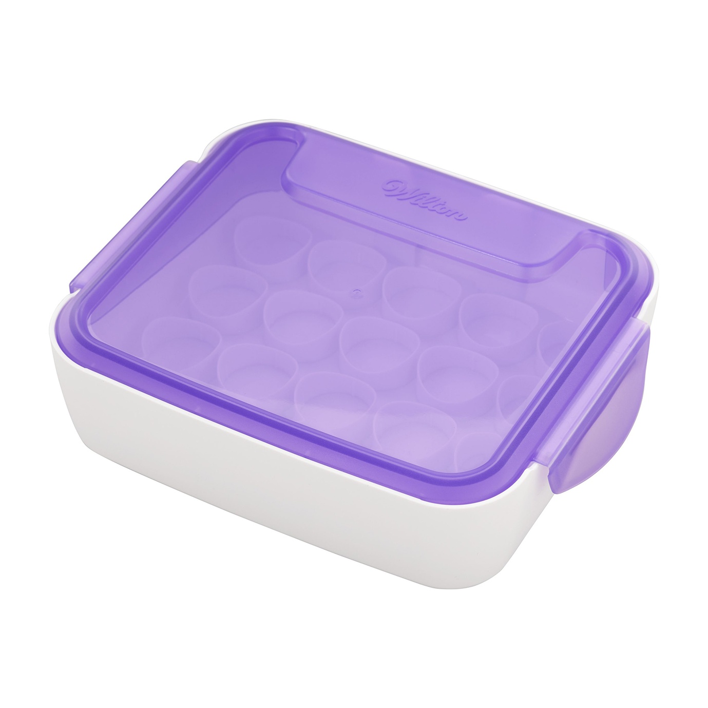 WILTON caja organizadora diseñada para mantener ordenados y accesibles los colorantes de glaseado, pensada para pasteleros profesionales y aficionados exigentes. La tapa de cierre a presión asegura que los colores permanezcan en su lugar y la tapa puede colocarse fácilmente debajo del organizador para no estorbar durante el trabajo. Dispone de un compartimiento específico para palillos, muy práctico para el uso frecuente en mazapán y fondant, y su diseño permite apilarla con otros organizadores Wilton para optimizar el espacio. Dimensiones aproximadas: 22,8 x 17,7 x 6,6 cm.